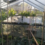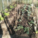 Dit jaar gekozen om geënte tomaten en komkommers van een commercieël bedrijf te kopen. Bij aankomst bleken de planten duidelijk kleiner dan wat ik gewend ben maar OK we gaan het proberen. In de kas staan inmiddels sla, andijvie, diverse kolen en 9 geënte tomaten (3 soorten), 9 geënte komkommers (snack en gewoon) en 3 rode en gele paprika’s alsmede enkele spaans peperplanten. Er is nog ruimte voor aubergines en meloenen maar dan is de kas wel vol. Buiten staat nog niet veel.