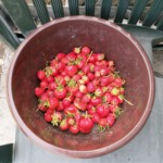 30-06-2018: Over droogte zullen we het niet meer hebben maar o o wat hebben de plantjes dorst (en ik ook). Er valt geen druppel en de komende week zal het ook droog blijven. Het aggregaat en de pomp draaien overuren. In de kas is het zo droog en heet dat zelfs de druiven last van droogte krijgen. Weinig tijd om nog zaken te zaaien, de tijd wordt gebruikt om water te geven en te oogsten. Aardbeientijd is wel een beetje over maar daarentegen hebben we nu zwarte-, aal- en kruisbessen. Boontjes kunnen geoogst worden.